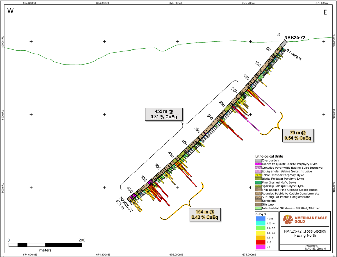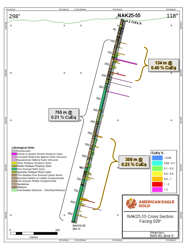 "These results reinforce the South Zone as the focus of our drilling program, yet they also highlight that it sits within what is clearly an exceptionally large and continuous copper-gold system at NAK that exists far beyond what is the South Zone. The consistent near-surface mineralization and significant step-out extensions in multiple directions confirm both the scale and the potential of NAK," said Anthony Moreau, CEO of American Eagle Gold Corp.