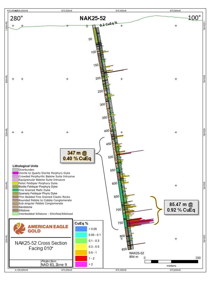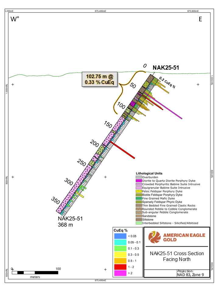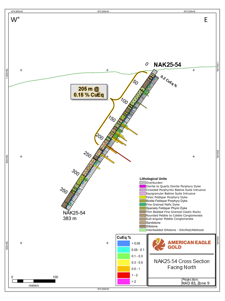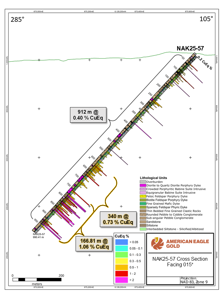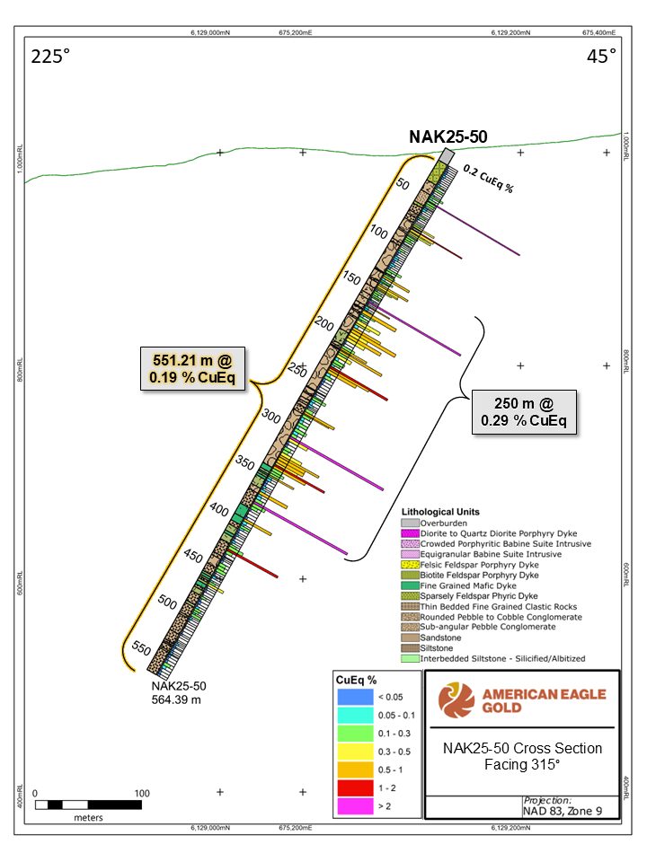 “These latest drill results at NAK underscore the exceptional potential of this large-scale copper-gold system,” said Anthony Moreau, CEO of American Eagle. “We are defining and expanding a high-grade core at depth that appears to feed into the extensive near-surface mineralization. It is evident that high-grade mineralization is extensive at depth, and that it may show strong continuity with surface zones and thereby confirm the significance of this discovery and the NAK Project.”