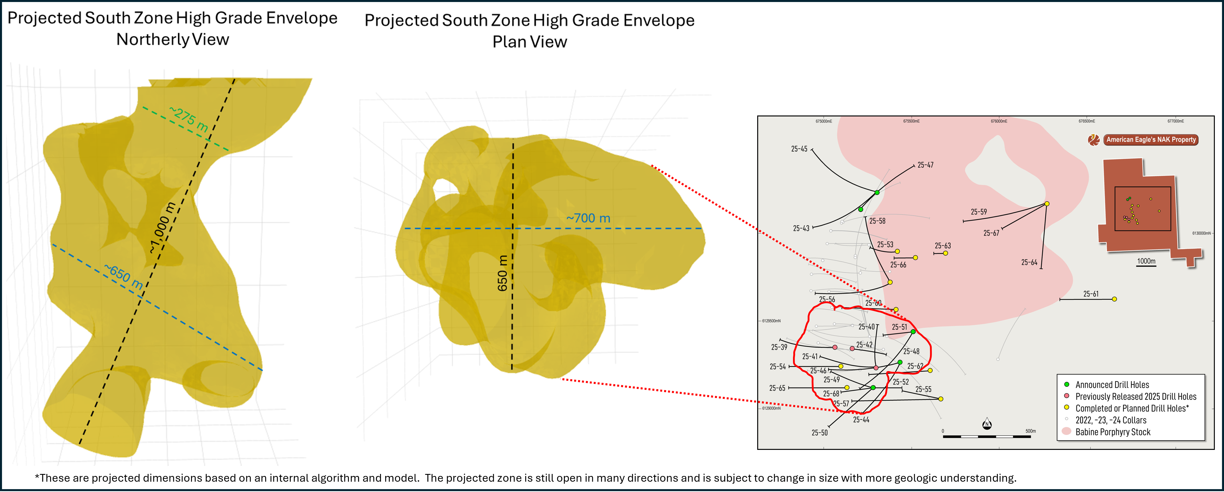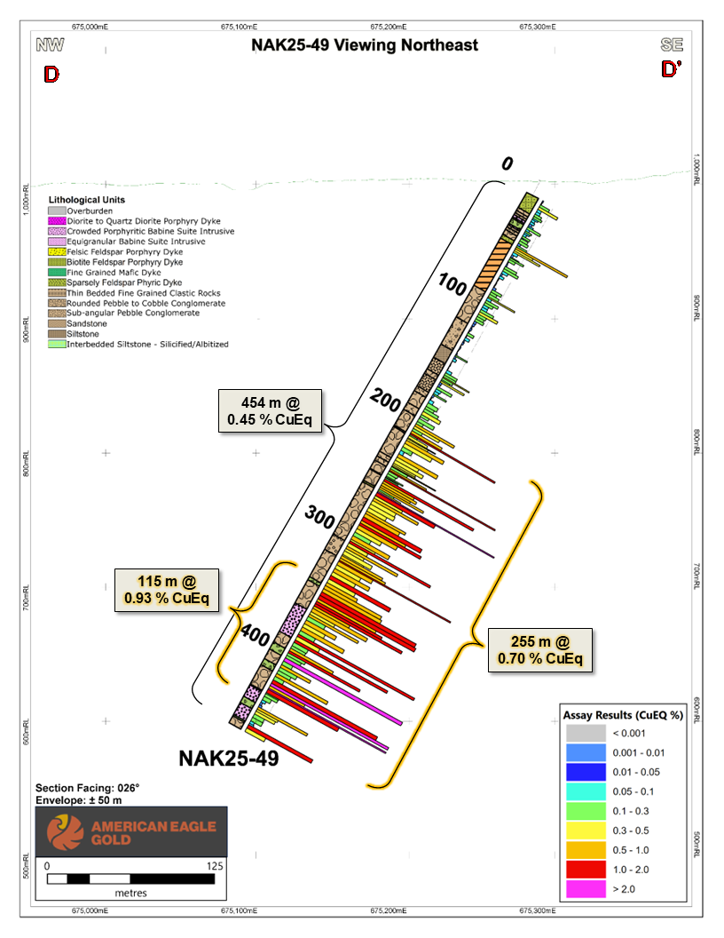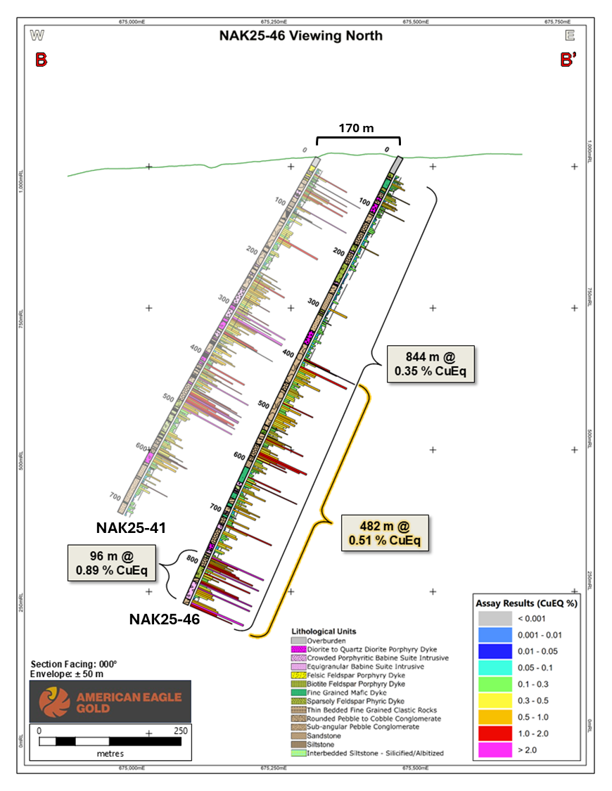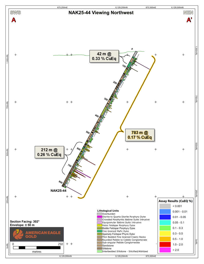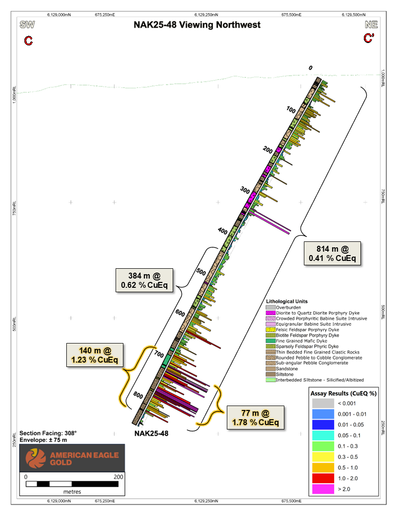Toronto, Ontario – October 7, 2025 – American Eagle Gold Corp. (TSXV: AE) ("American Eagle" or the "Company") is pleased to report a series of broad high-grade intercepts in drilling, including the highest-grade intercepts to date at the NAK copper-gold porphyry project in British Columbia.