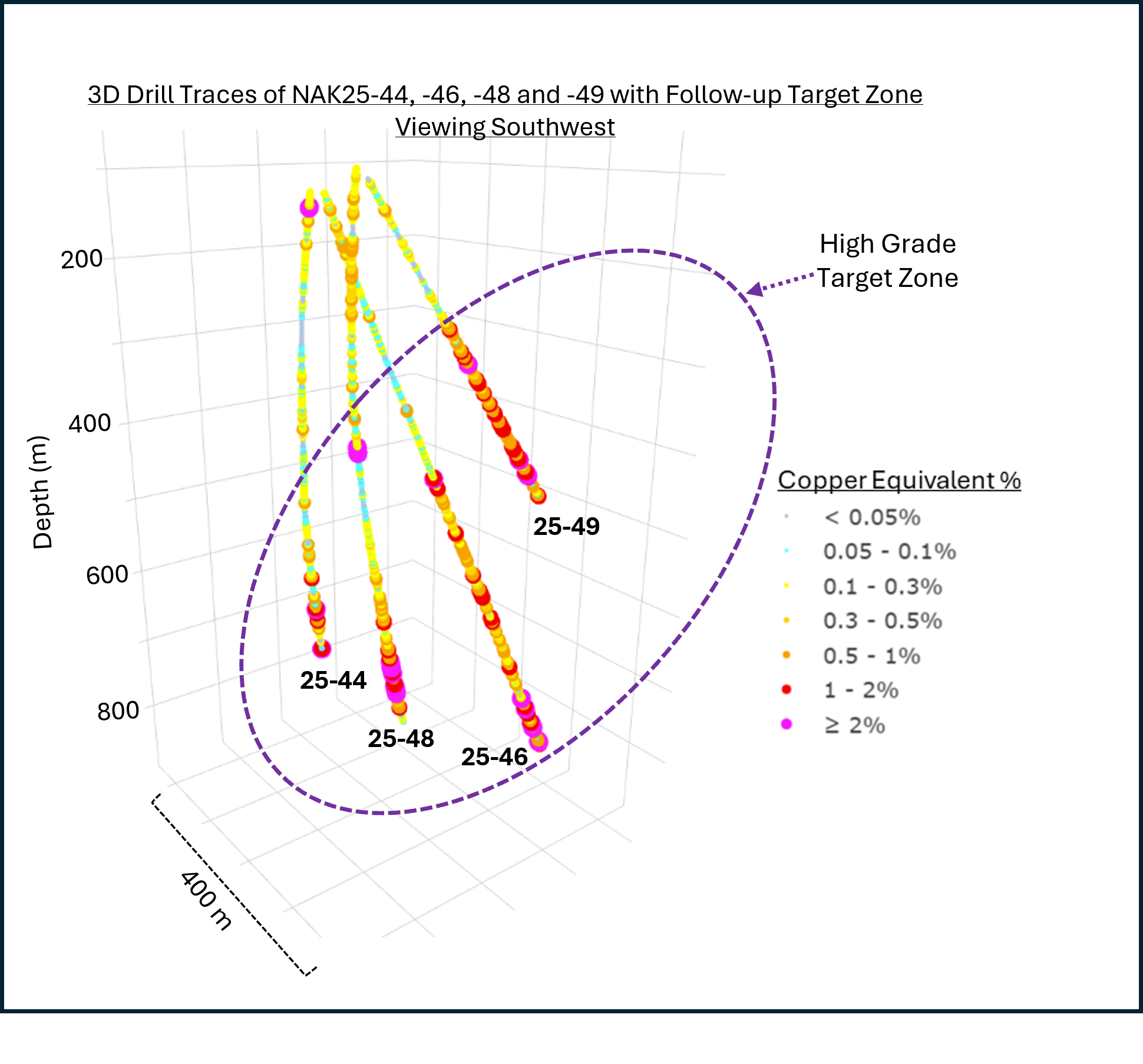 The deep mineralization within NAK25-48 represents some of the strongest grades drilled to date on the NAK project, and remains open, with follow-up drilling underway.