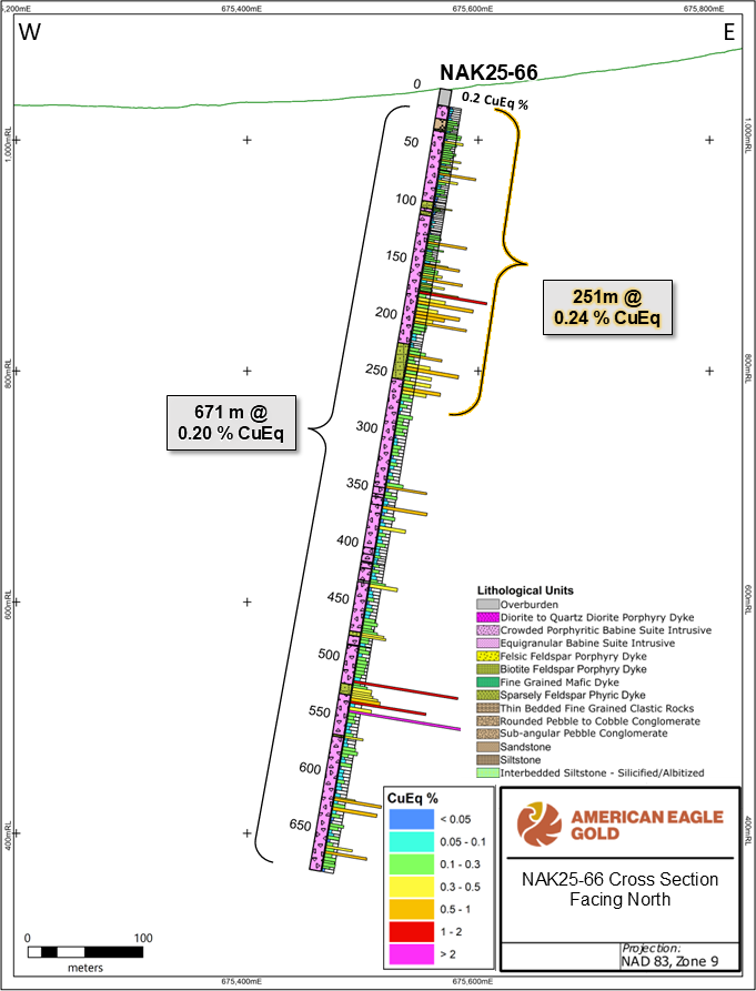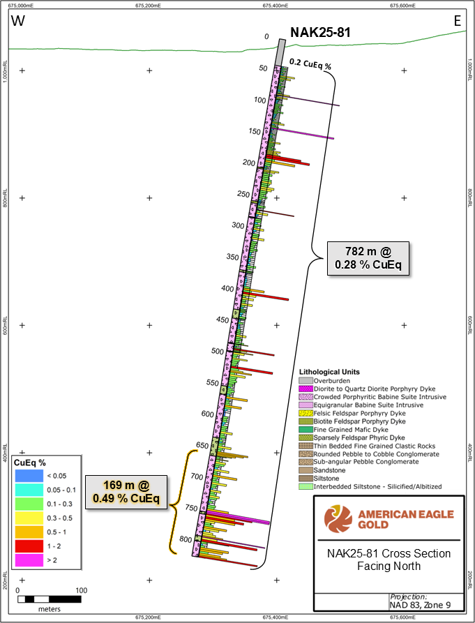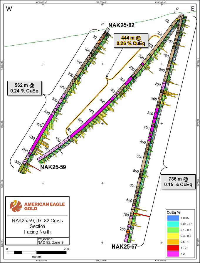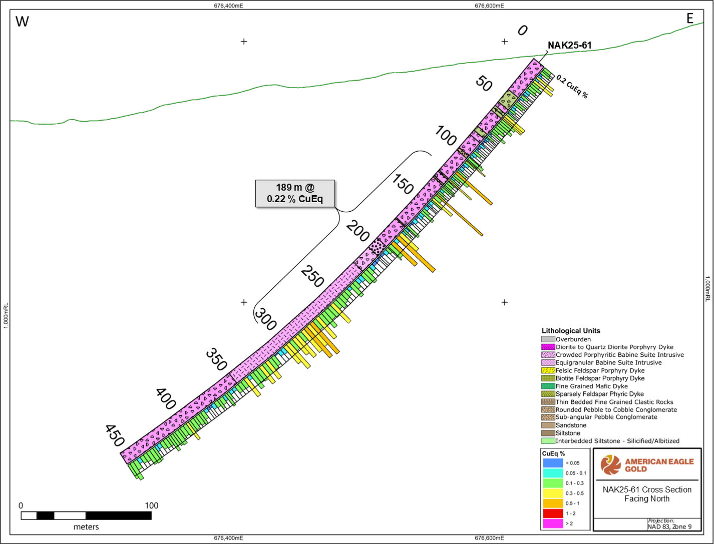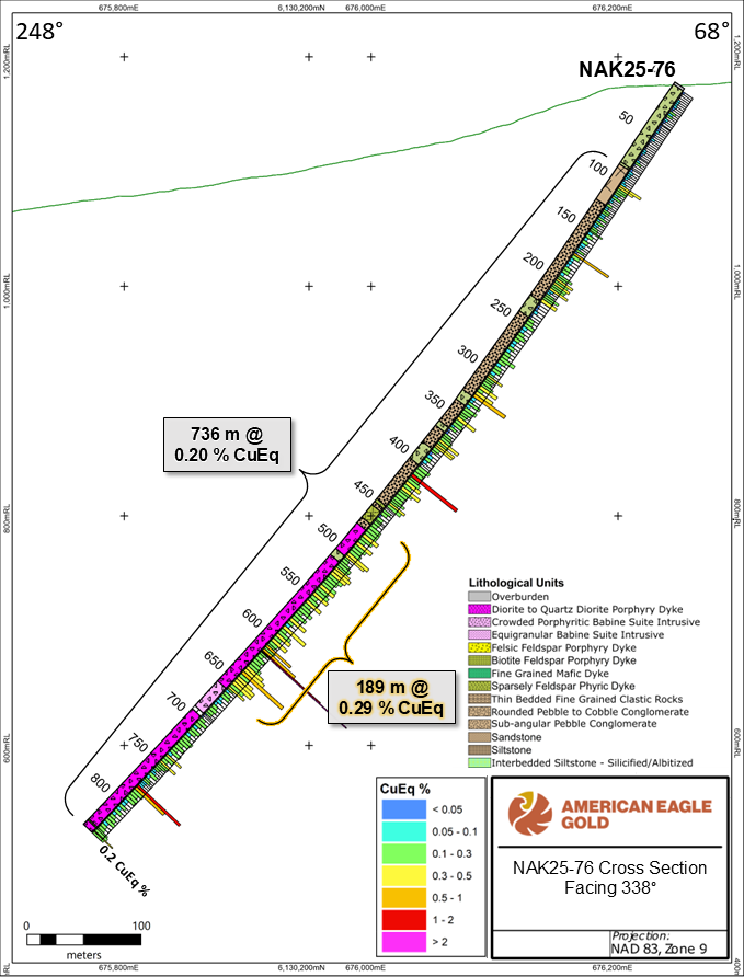 Toronto, Ontario – February 25, 2026 – American Eagle Gold Corp. (AE:TSXV | AMEGF:OTCQB) (“American Eagle” or the “Company”) reports breakthrough drilling at its 100%-owned NAK Project that materially expands the scale and continuity of porphyry stock‑hosted Cu‑Au mineralization.